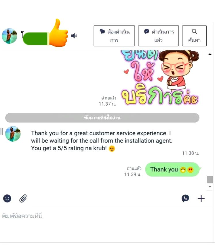 สวัสดีค่ะ วันนี้แอดมินมีเรื่องราวดีๆในแง่มุมของลูกค้าที่ได้รับบริการหลังการขาย หรือการติดตั้งเน็ตบ้านAISFibreจากทีมงานแอดมินของเราเองนะคะ เนื่องด้วยการบริการลูกค้าของเราจะเป็นรูปแบบการรับติดตั้งออนไลน์เป็นหลัก เพราะฉะนั้นการให้ความใส่ใจในข้อมูลอย่างละเอียดและการเสนอข้อมูลแพ็กเกจอย่างตรงไปตรงมา อีกทั้งการให้คำตอบอย่างรวดเร็ว จึงเป็นการทำงานหลักๆของทีมแอดมิน ไม่ว่าจะสอบถามข้อมูลในส่วนใด การให้คำตอบจะต้องถูกต้องและชัดเจนเสมอ เพื่อให้ลูกค้าได้รับข้อมูลที่ดีและพร้อมสมัครรับการติดตั้งจากช่องทางออนไลน์ได้อย่างสบายใจและปลอดภัยค่ะ