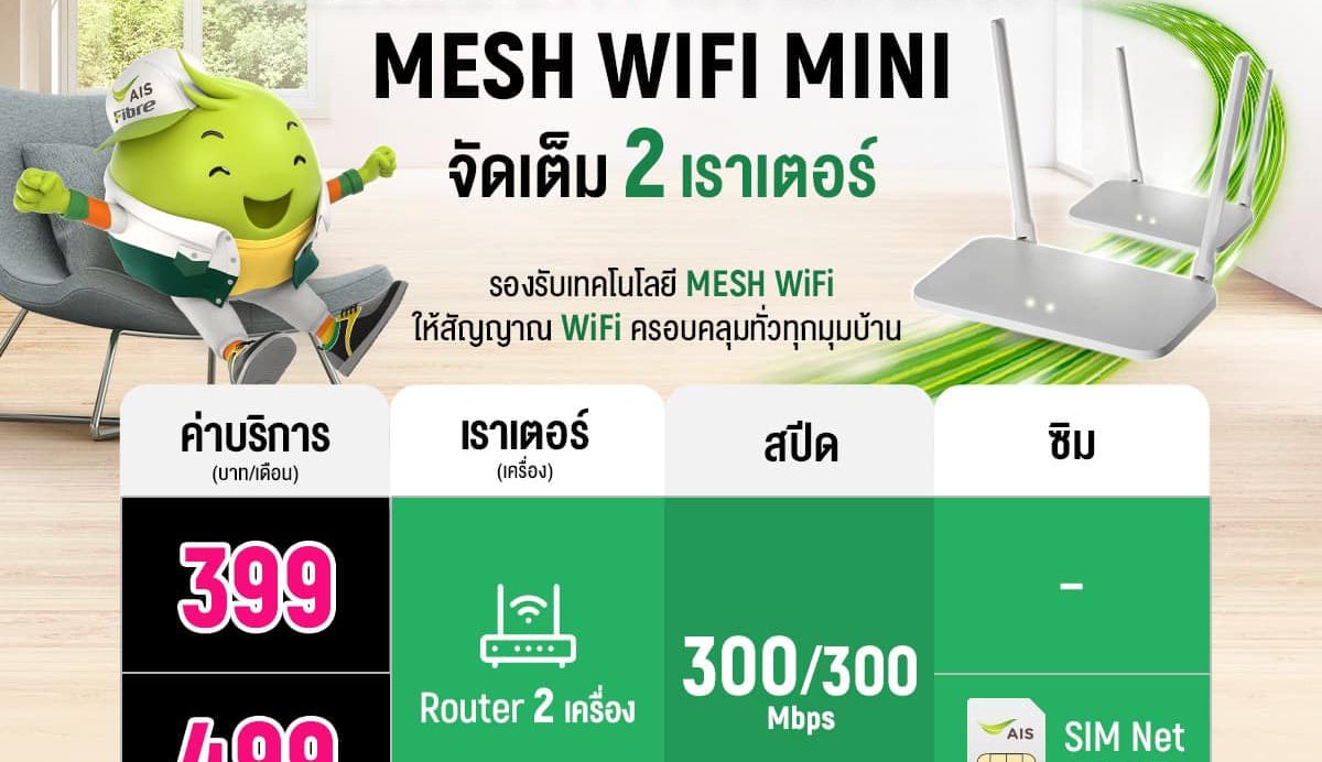 เน็ตบ้านเอไอเอสแพ็กเกจ 399 และ 499 รับ2 เราเตอร์ ติดตั้…